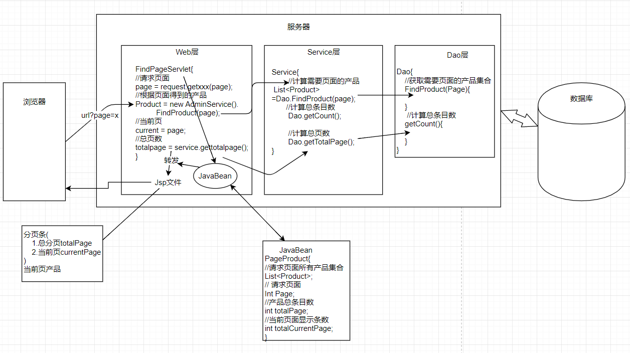- control: 告知service层,计算总页数,计算总条目数,获取对应页面产品集合 —->第3步